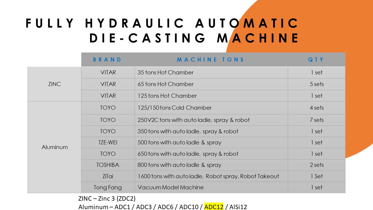 © 1999 Advance-Diecasting Industry Co.,Ltd. Professional in Die-casting Zinc @ Aluminum alloy
